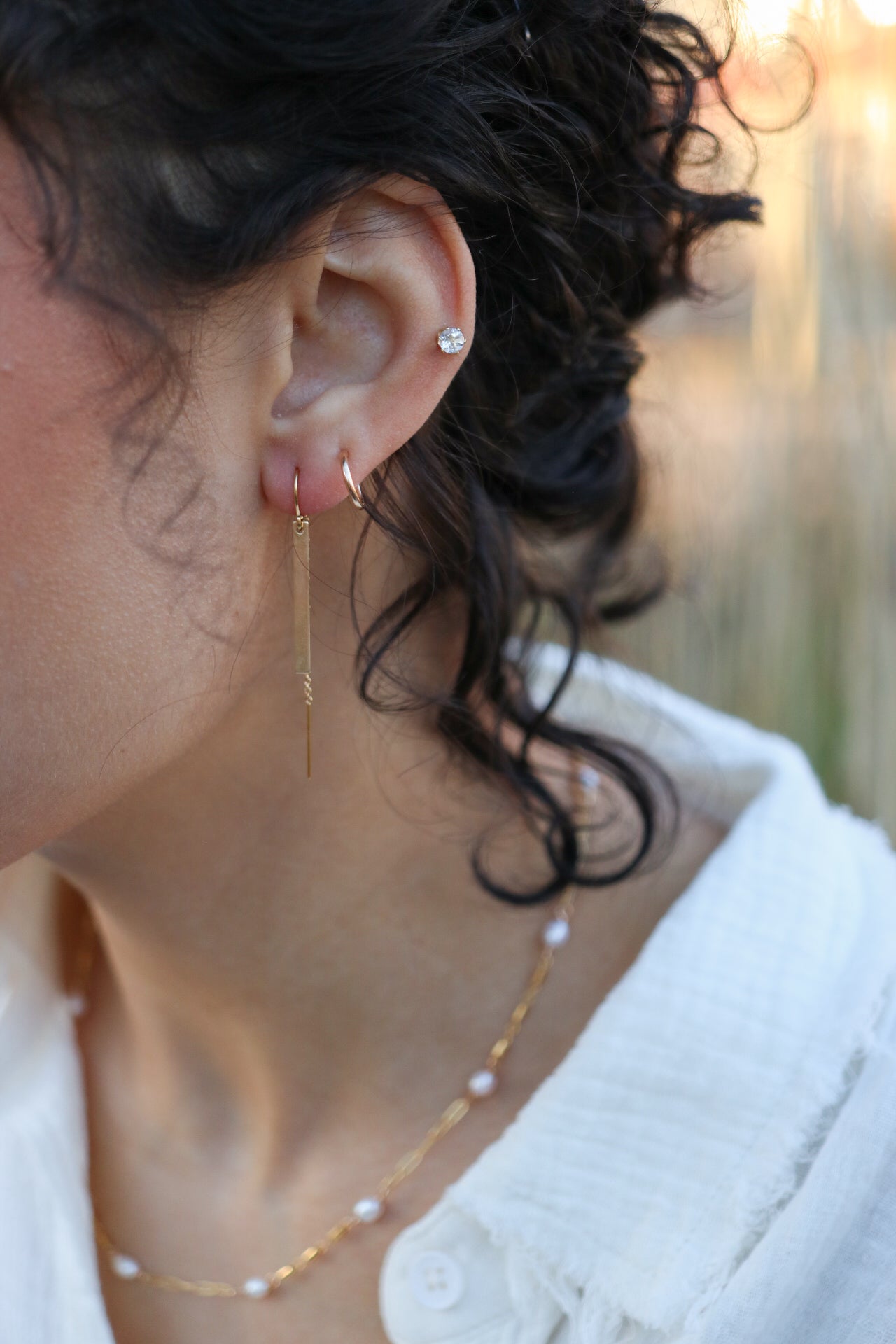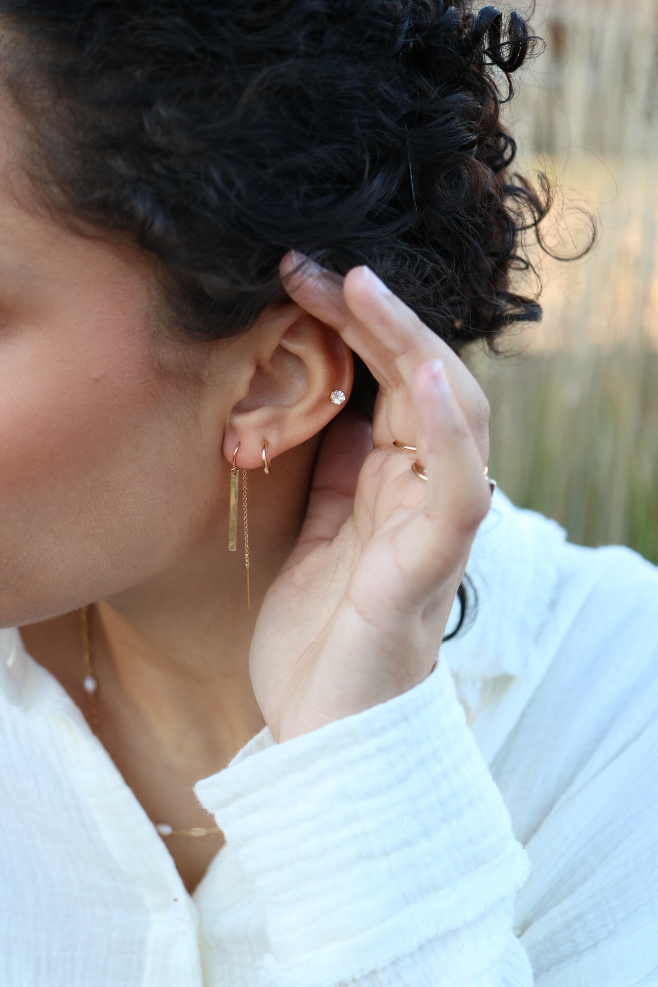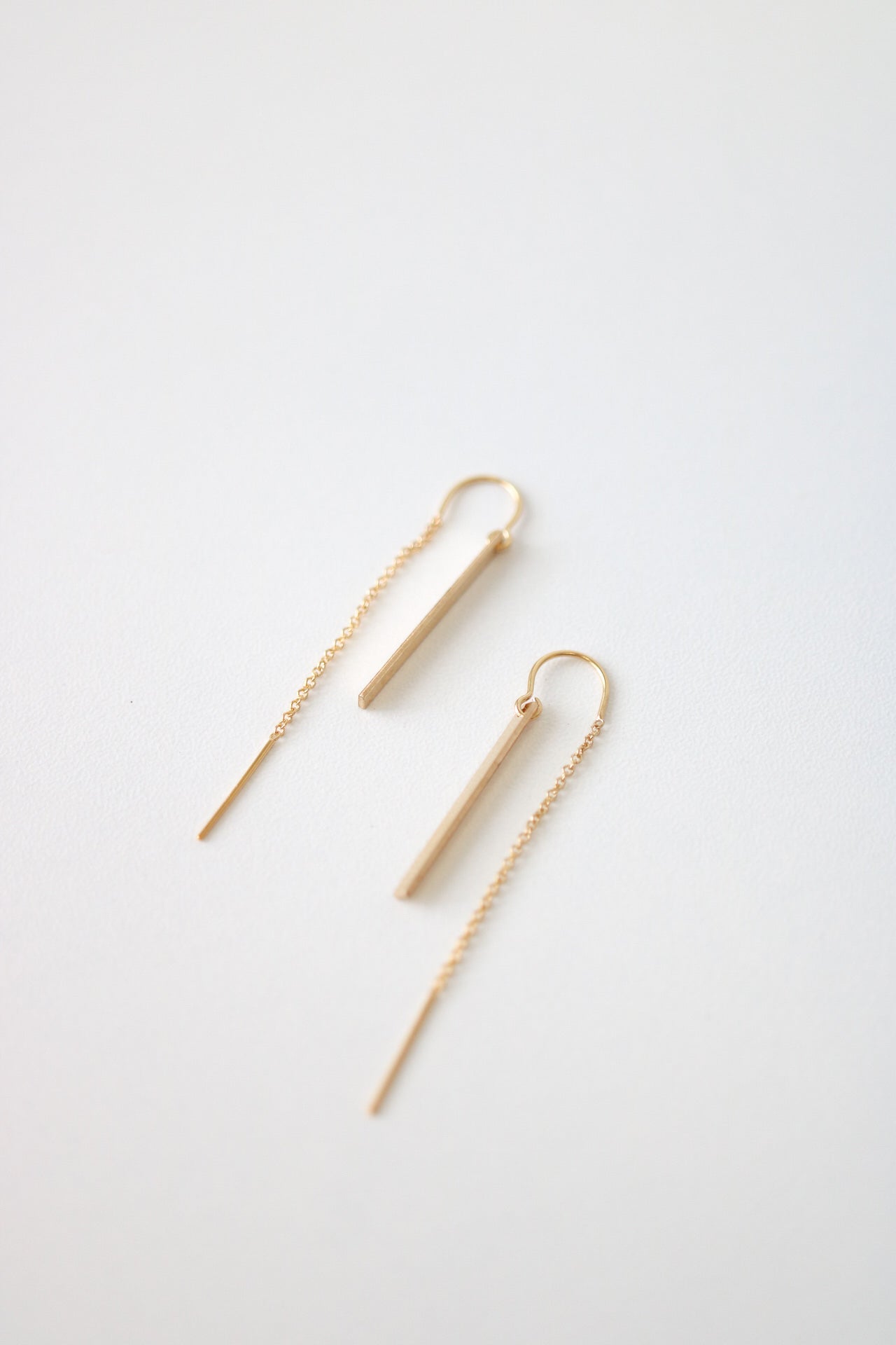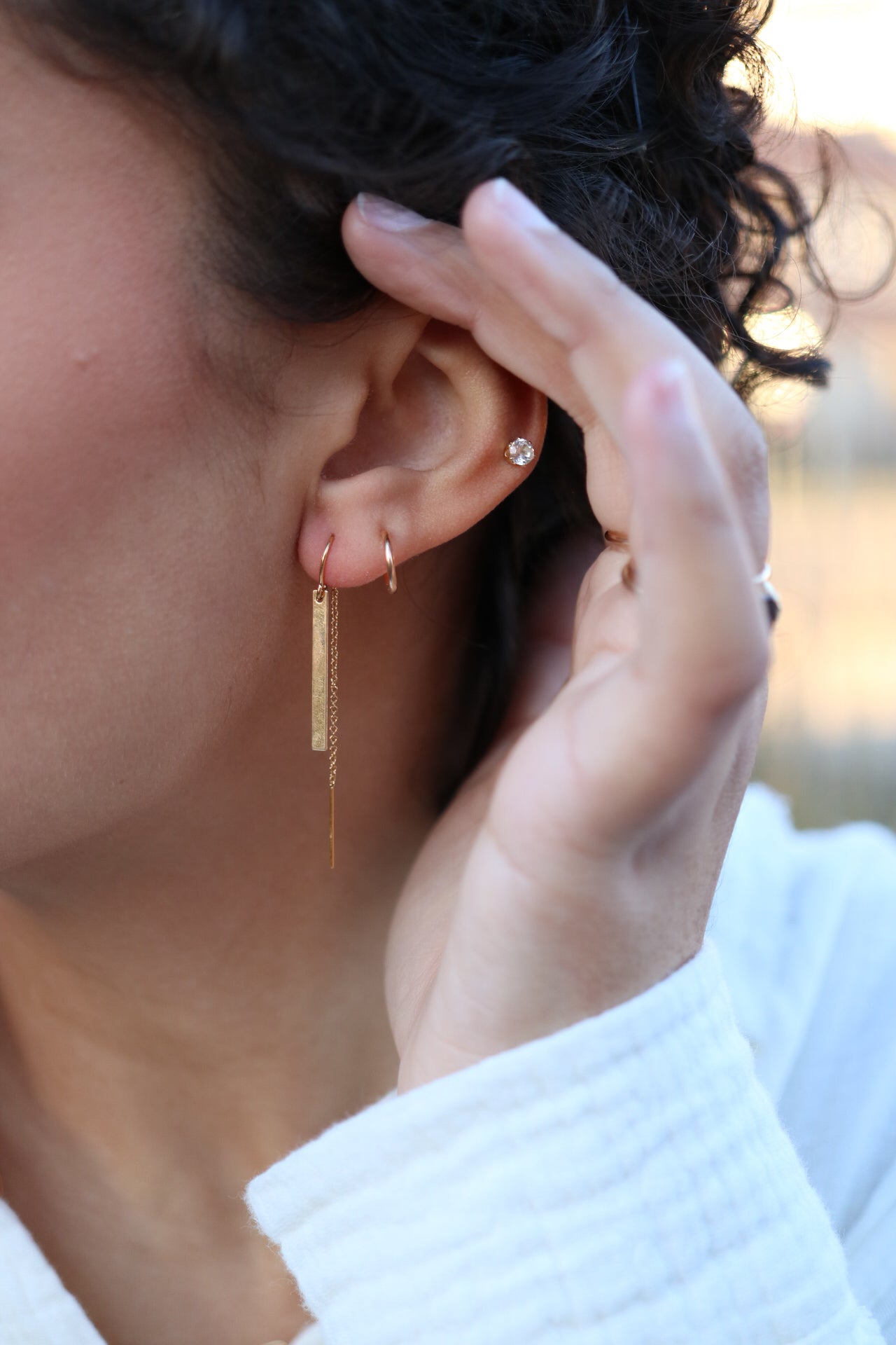 Add a subtle, stylish touch to your look with the Bar Threaders. These threader earrings easily thread through your piercing to give you a minimalist, chic look.
