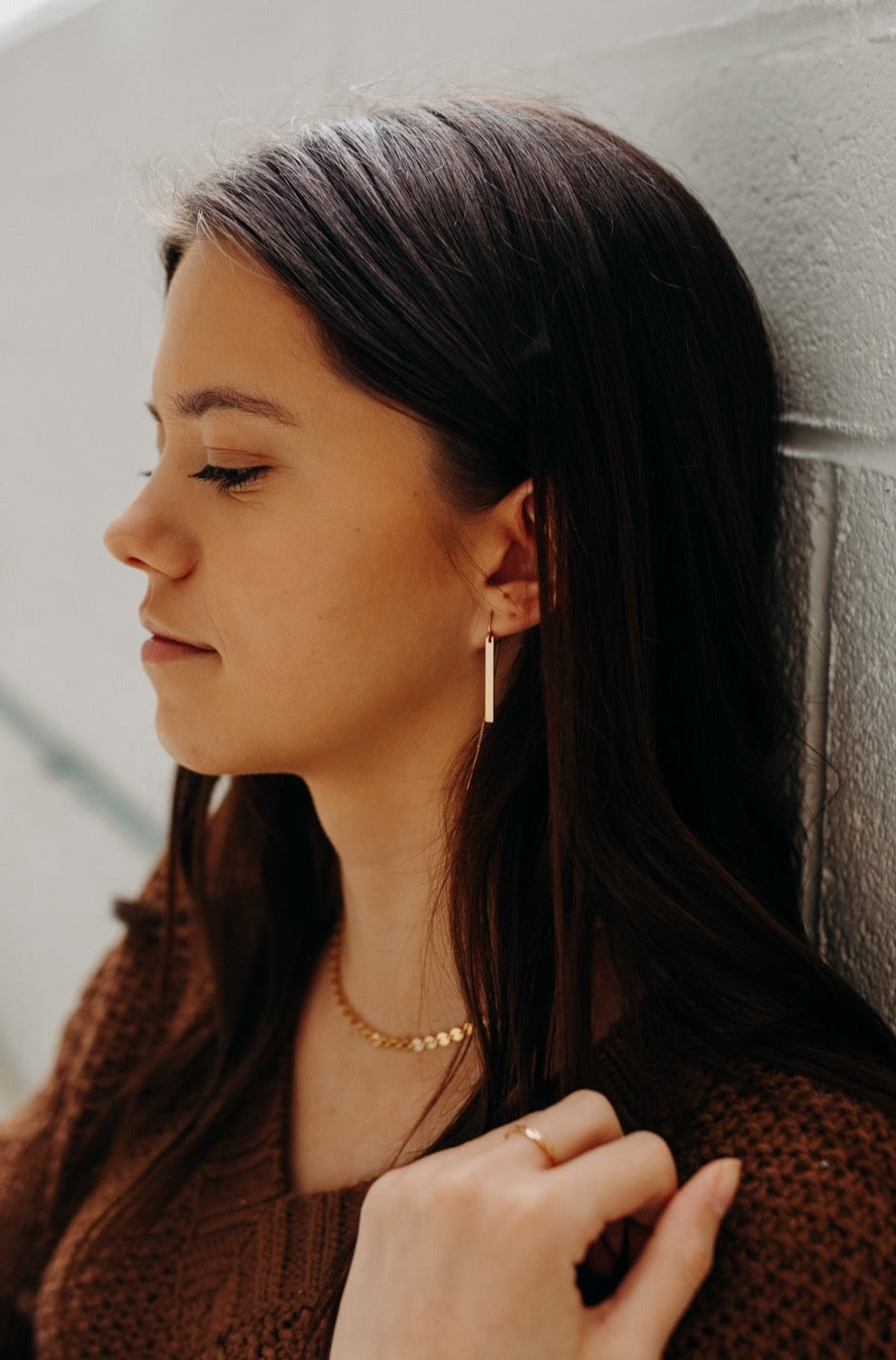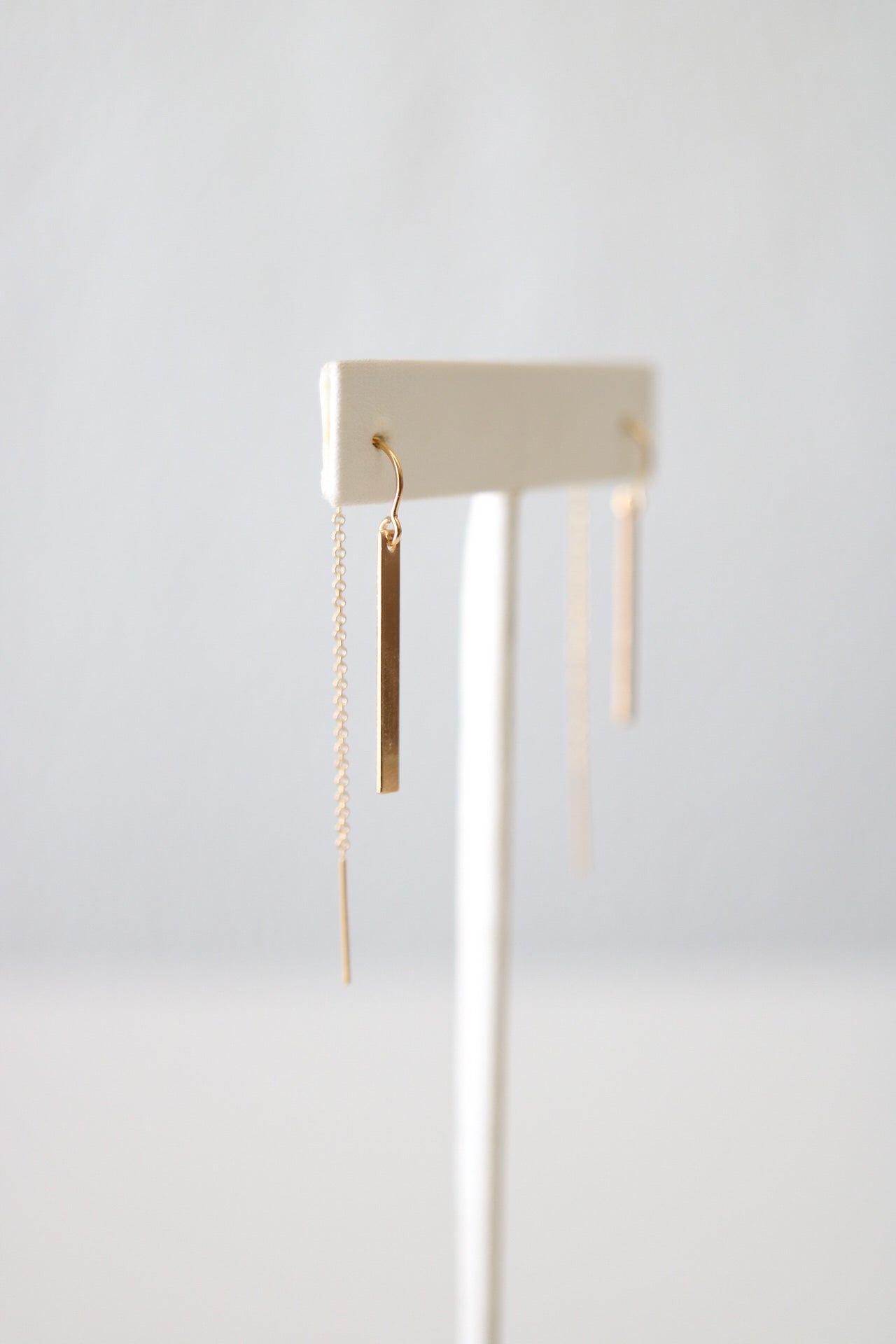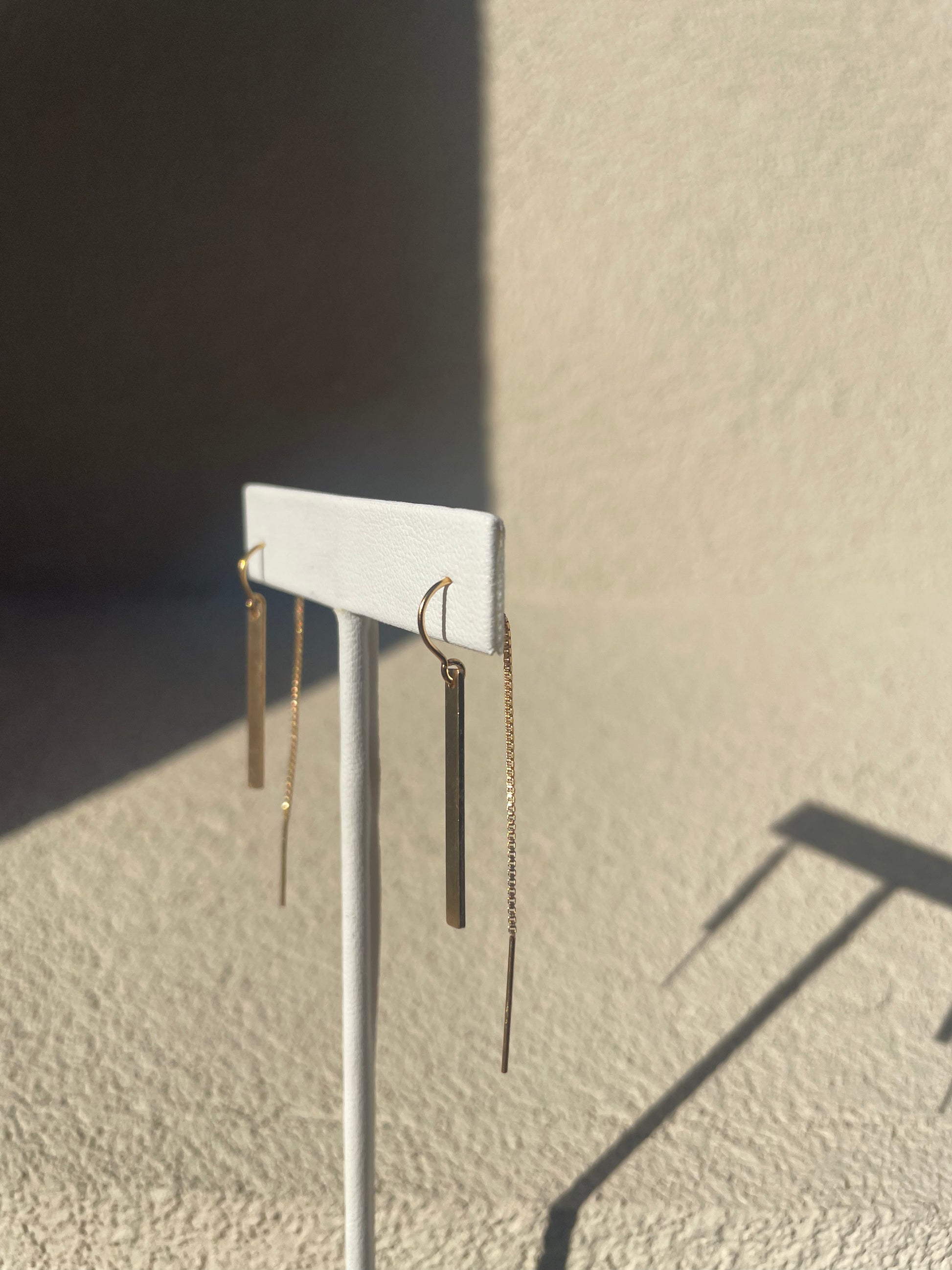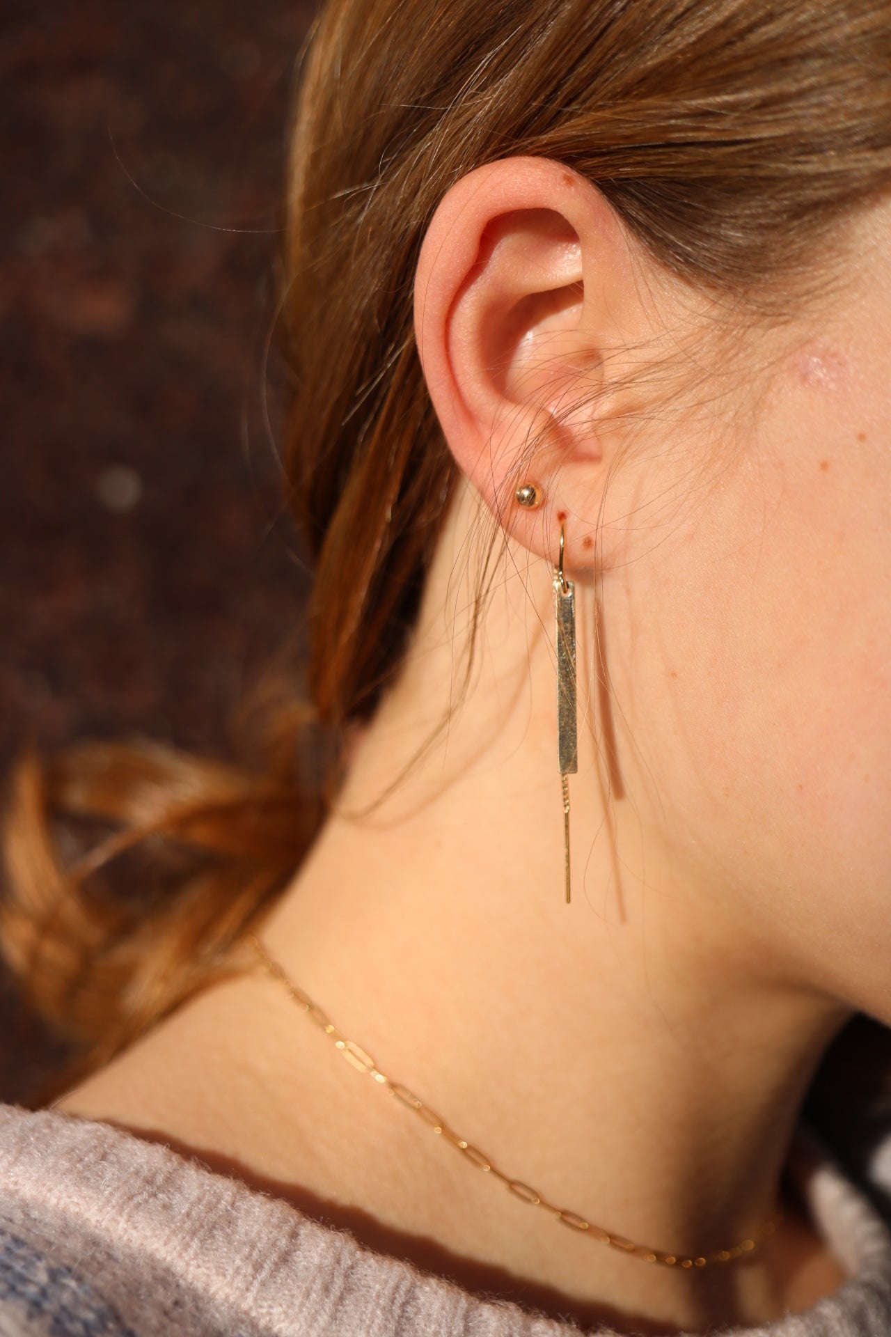 Add a subtle, stylish touch to your look with the Bar Threaders. These threader earrings easily thread through your piercing to give you a minimalist, chic look.