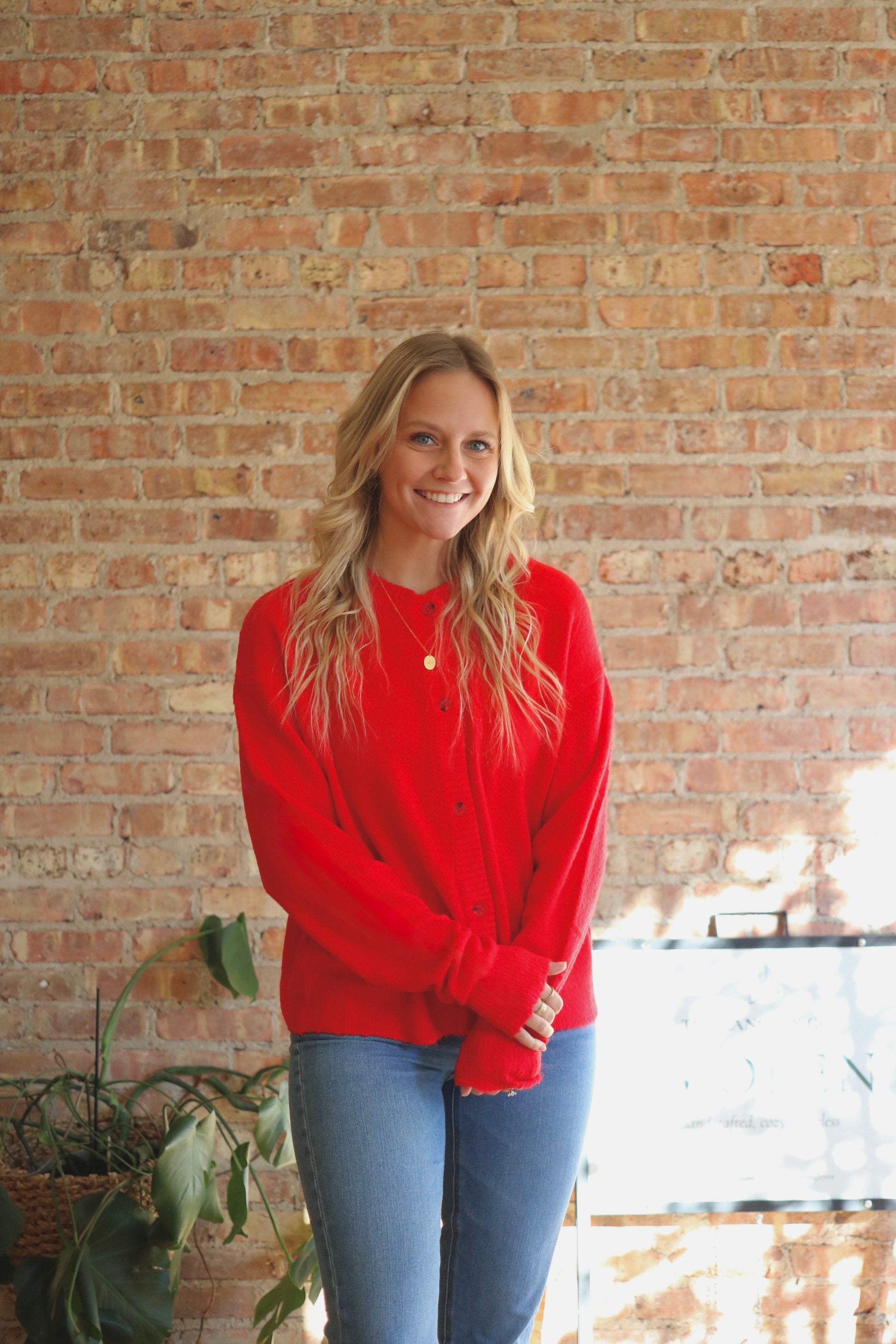 This is the perfect holiday sweater! This cozy knit keeps you comfortable and is super soft. Whether you're sipping cocoa by the fire or mingling at holiday parties, this cheerful red sweater is your new seasonal favorite!
