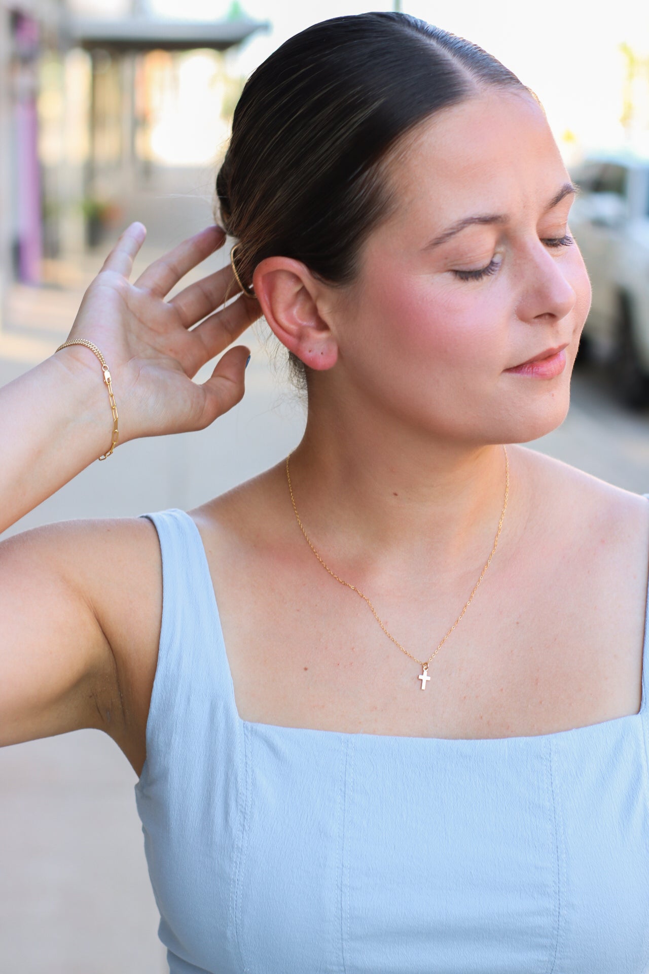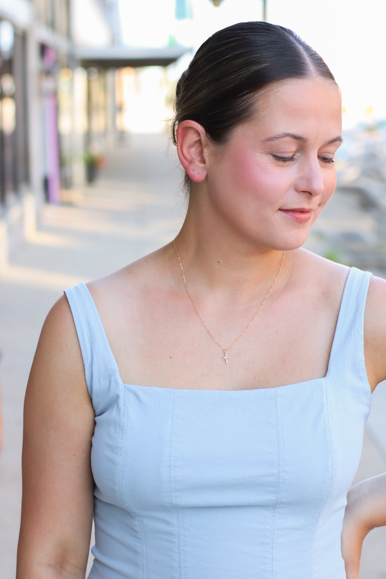 This delicate cross necklace is designed and intended to remember Jesus' death and resurrection on the cross.