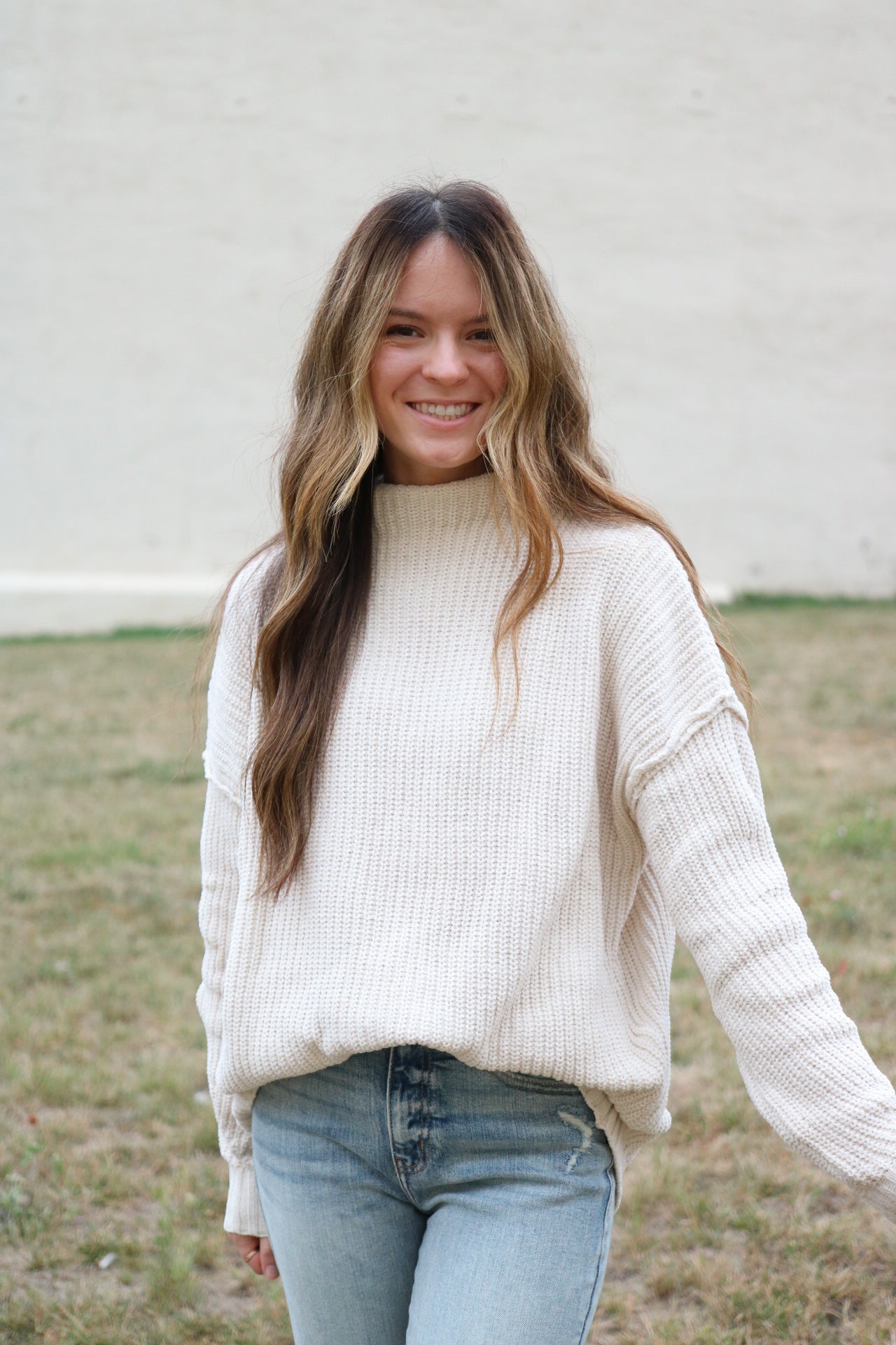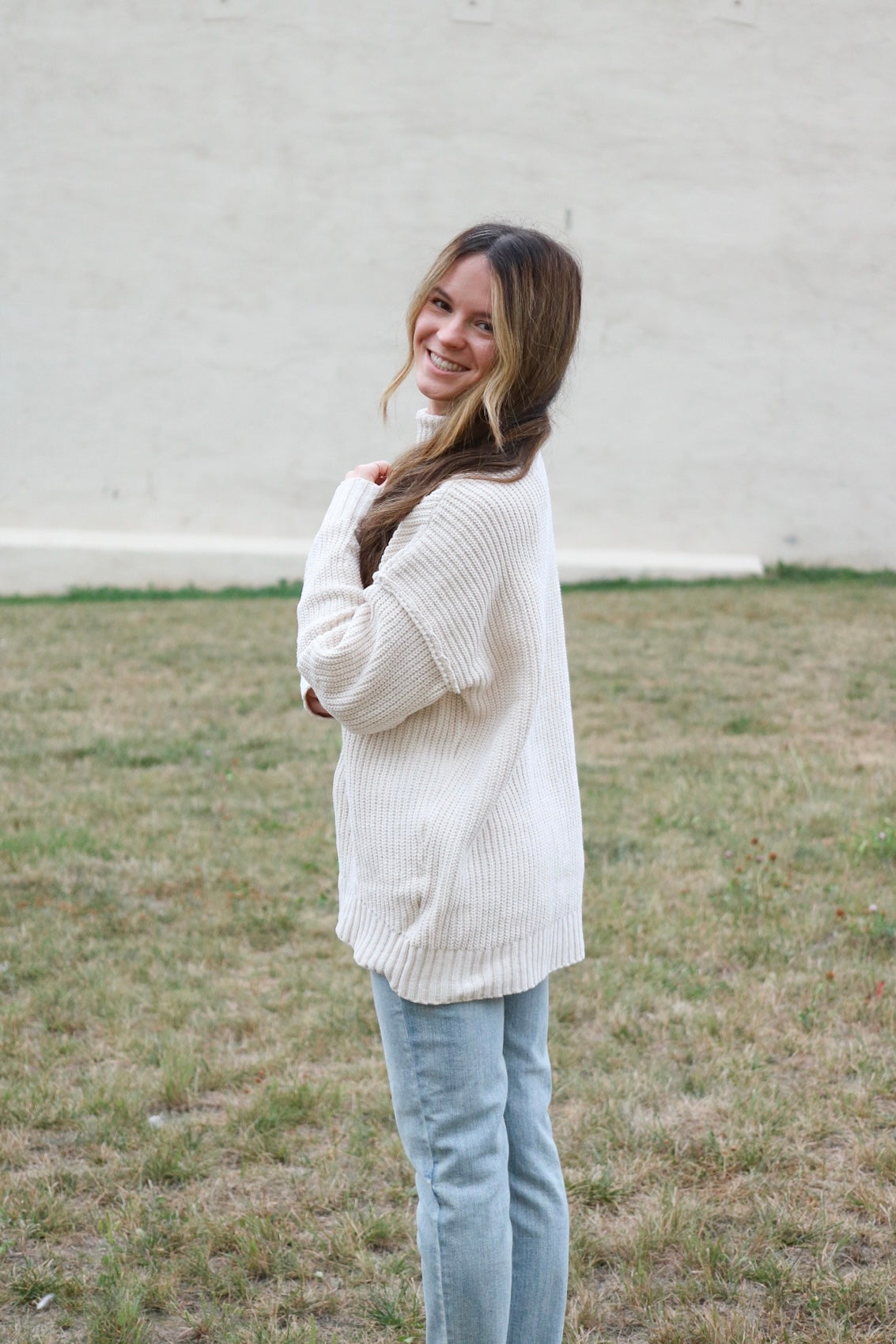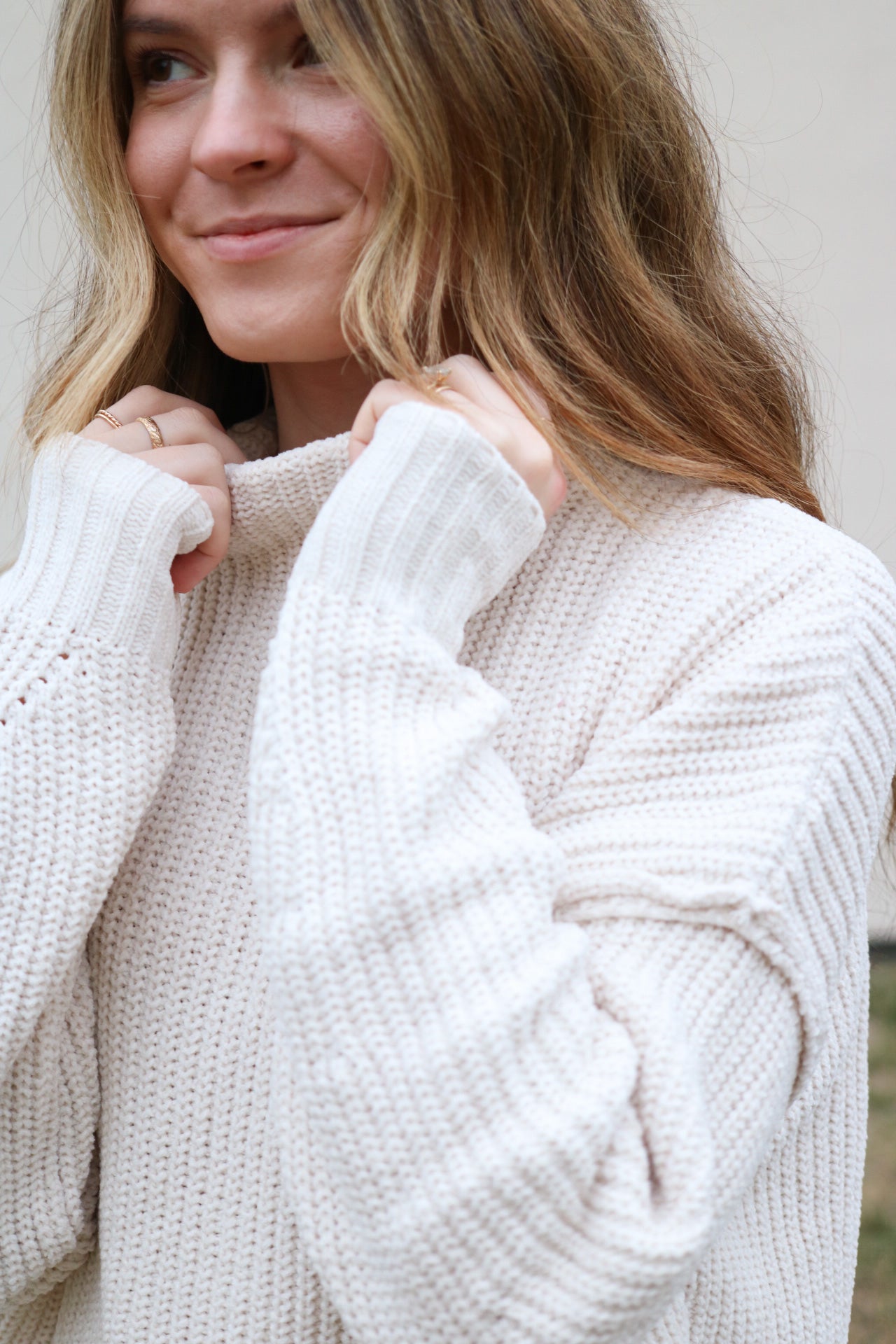 The chunkiest, coziest knit sweater your sitting-by-the-fire dreams could dream of. Slightly oversized, soft touch, it's going to be your live-in sweater all season long.