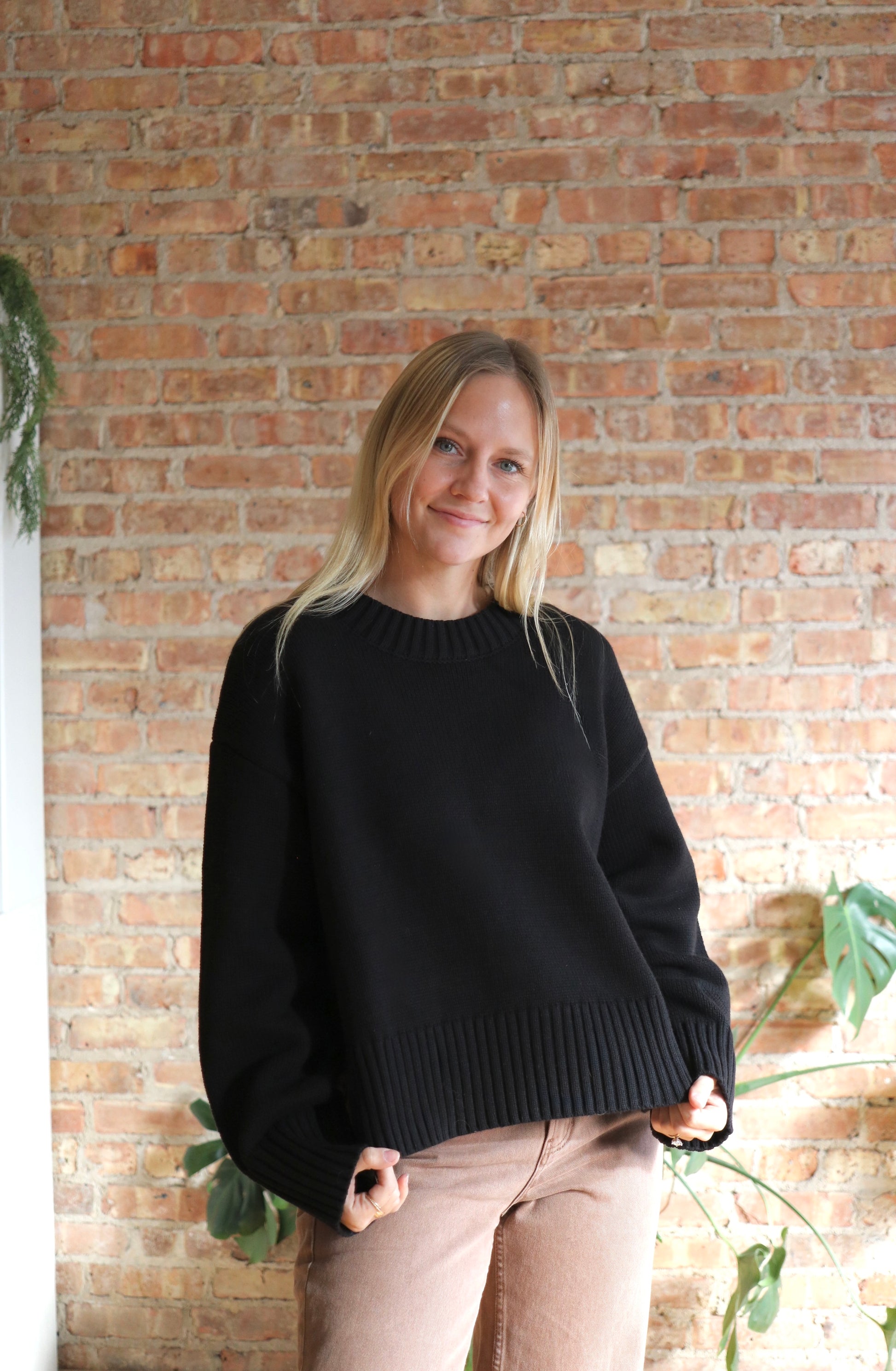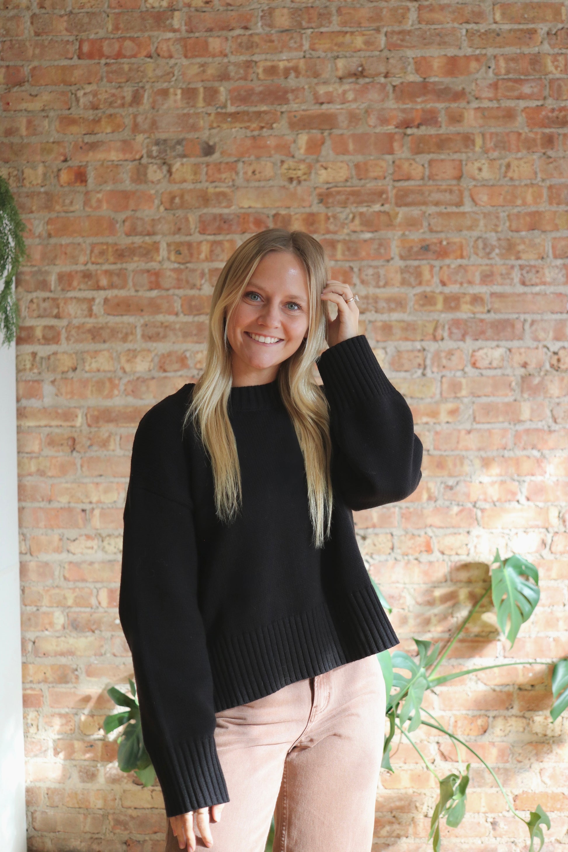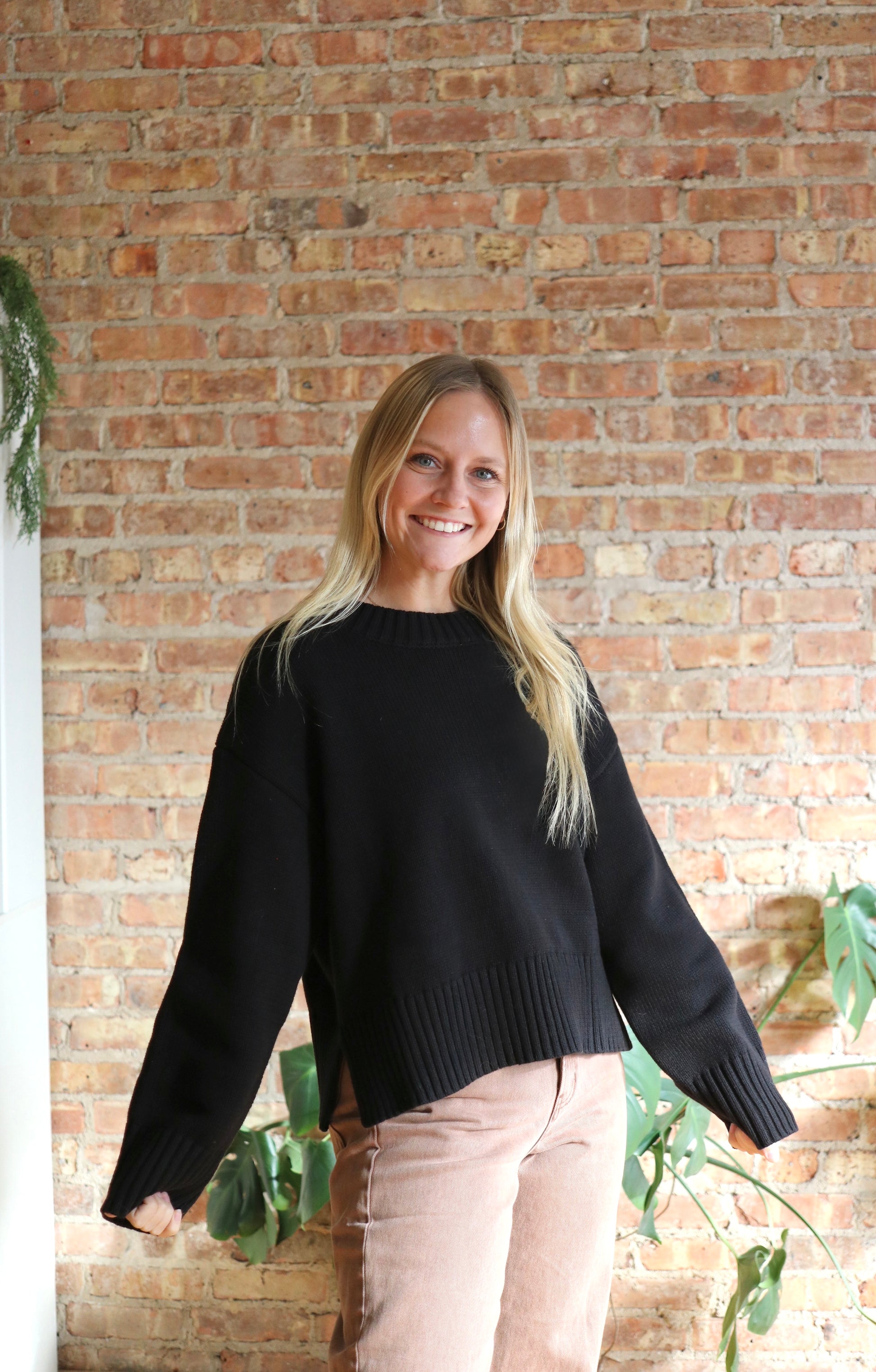 A classic sweater made for simple, everyday wear. Features a small side slit on each side (pictured) which provides a more relaxed fit. Styles perfectly with leggings or jeans, and can easily be dressed up with our shimmery gold-filled jewelry.
