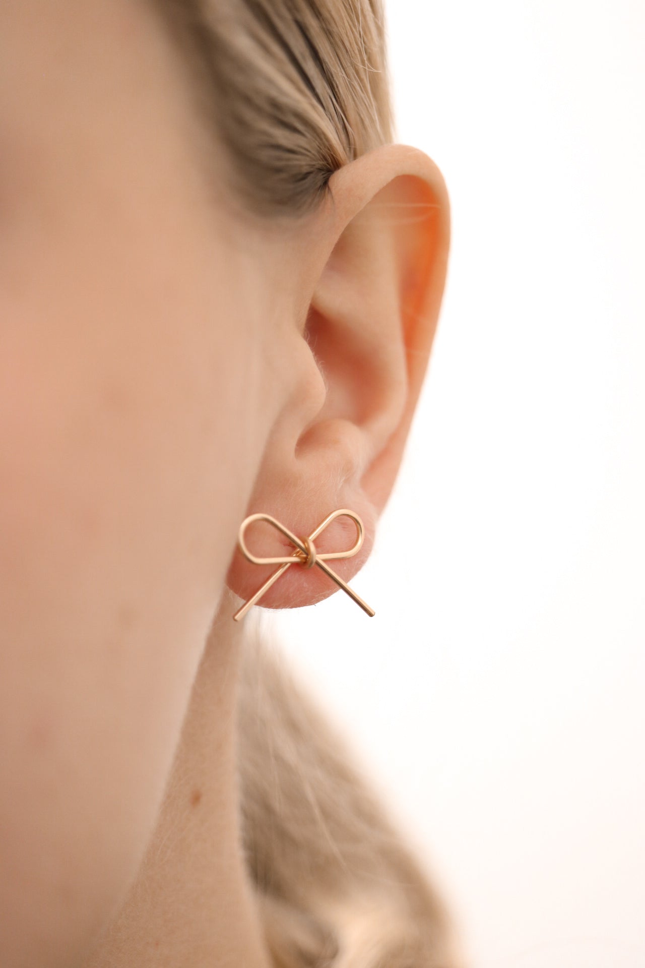 Elevate your look into a delicate, romantic outfit with these minimalist bow stud earrings!