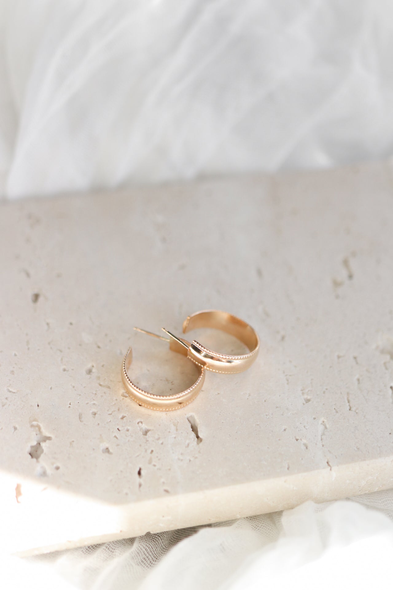 Sleek and unique, these are probably your next favorite pair of hoop earrings! Handmade in Freeport, IL out of 14k Gold-Filled, these earrings are great for daily wear. If you love this style, check out our 20mm Ribbed Hoops & Ribbed Ring!