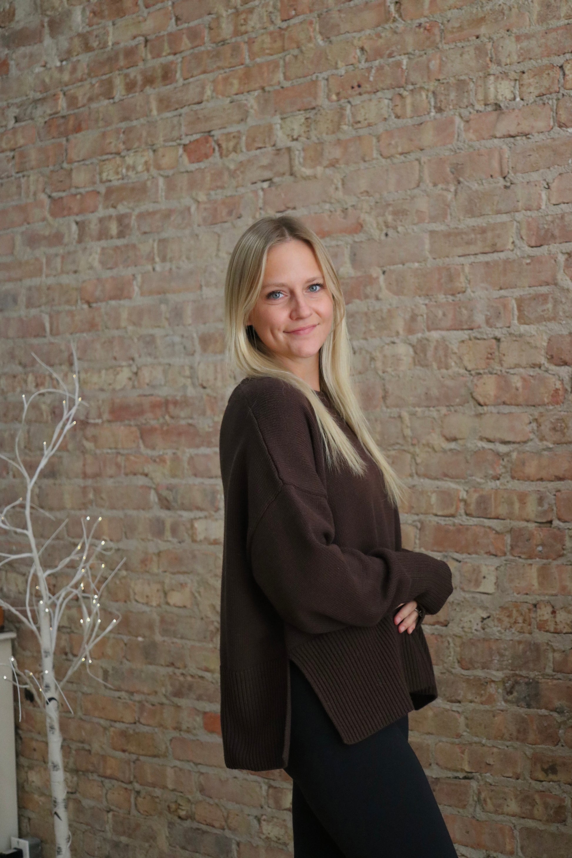 A classic sweater made for simple, everyday wear. Styles perfectly with leggings or jeans, and can easily be dressed up with our shimmery gold-filled jewelry.